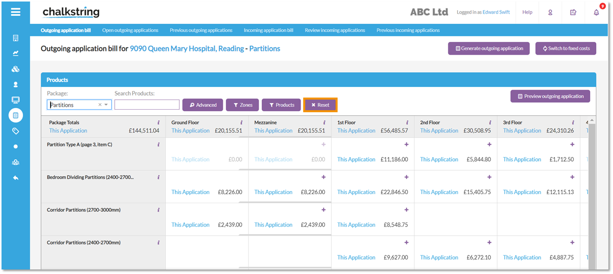 Certain pages in Chalkstring, such as the labour bill, have additional filters which can be viewed and applied by clicking on the buttons.