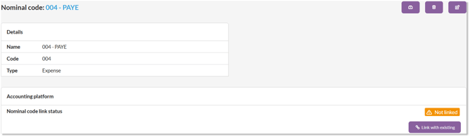 - Next to each unlinked nominal code listed in the warning, there will be a Link button