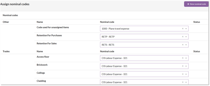 1. Go to Accounts > Nominal codes and click Assign nominal codes.