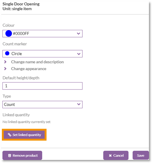 - From takeoff, click the 'Pencil' icon for the dependant product and click 'Edit linked quantity'
