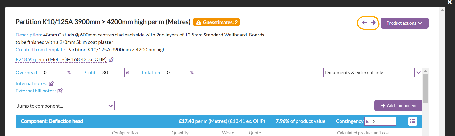 You can now navigate between the products in the rate build up without having to close the screen. Click on the forward and back arrows next to the product actions button in the top right of the screen.