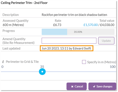 As well as showing you when a products progress was last updated, it now shows you which user was the most recent person to update progress.