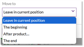 - 'Leave in current position' - Select this option to leave the product in it's current position in the list.
